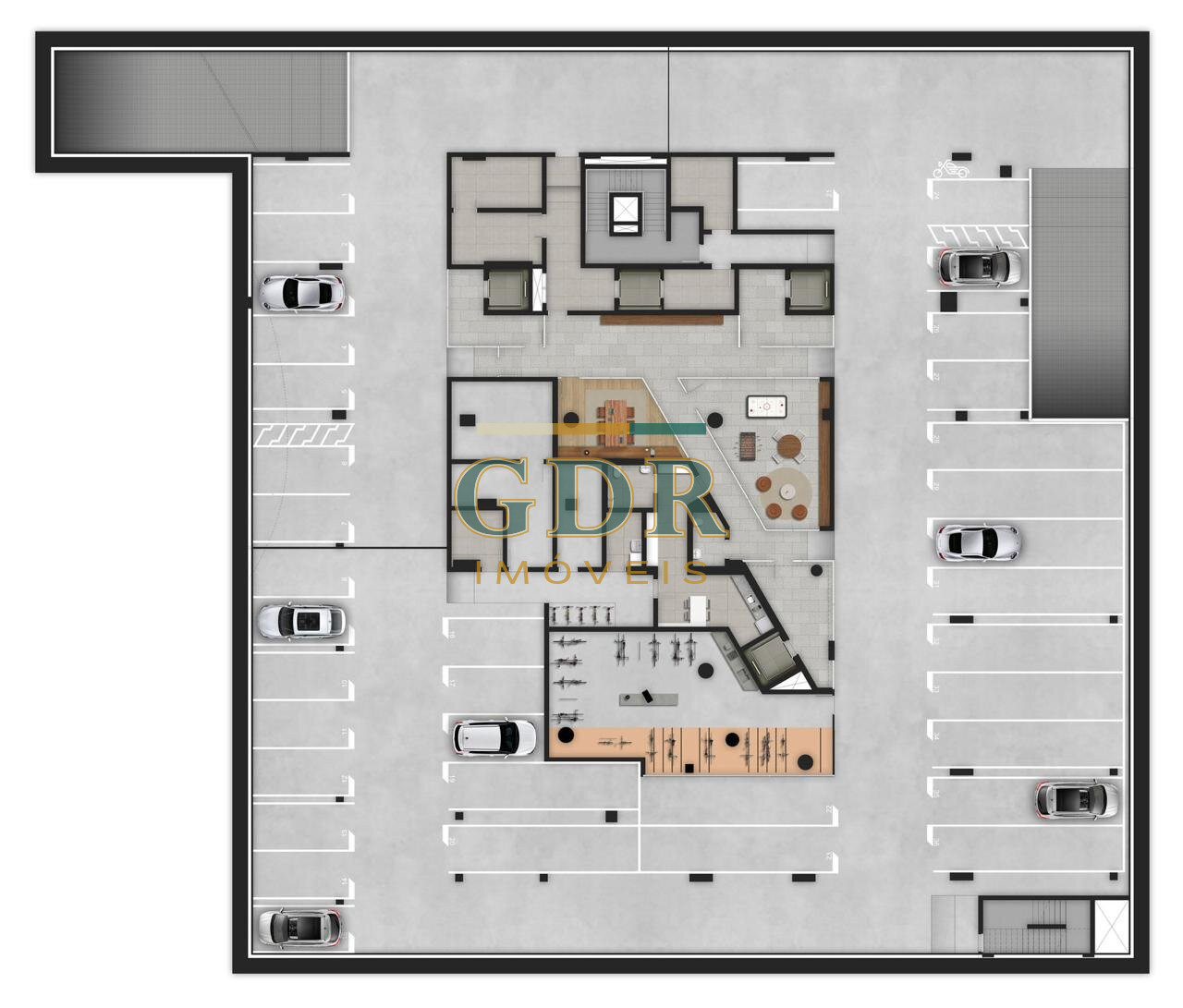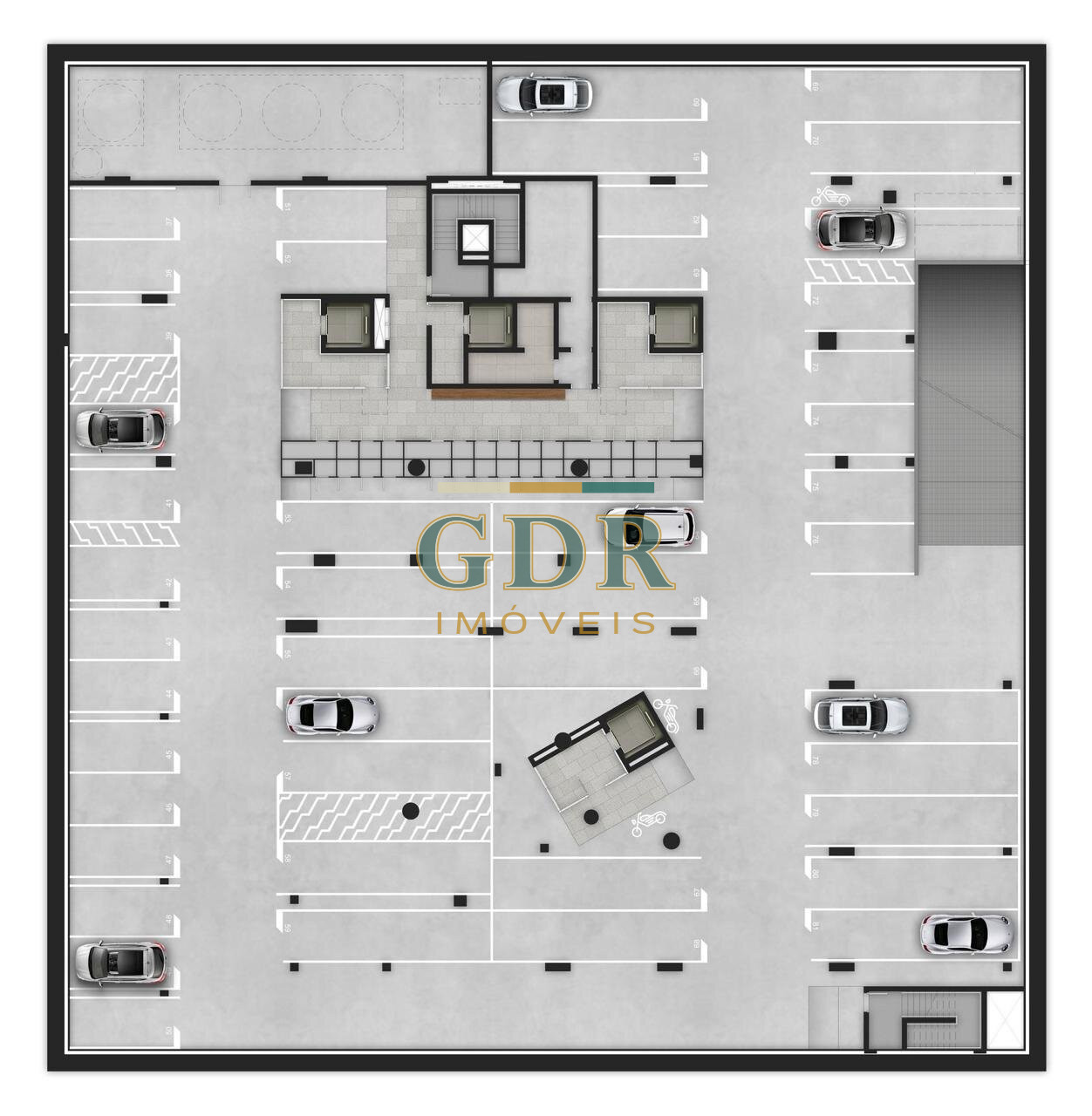 107 vagas para moradores + 7 vagas para visitantes