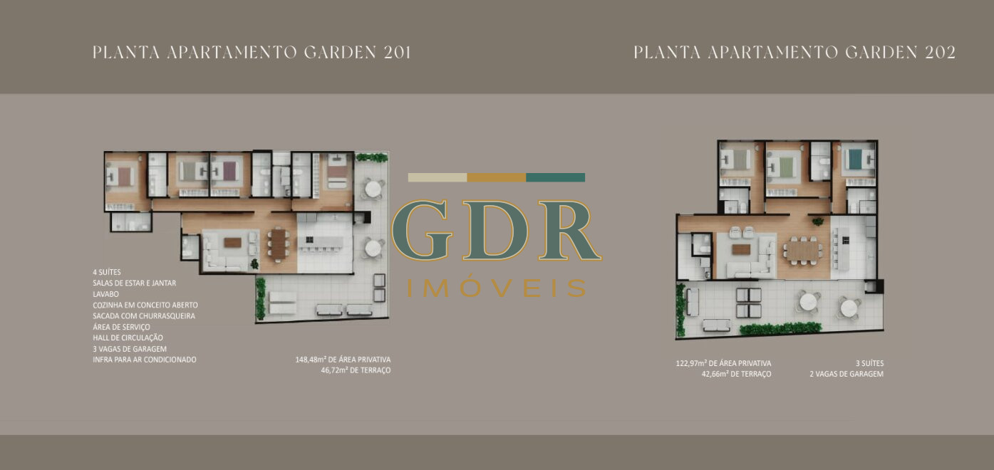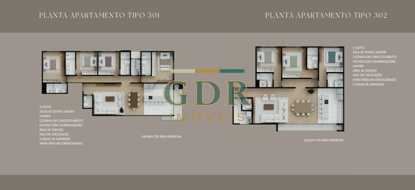 Plantas com 3 e 4 suítes