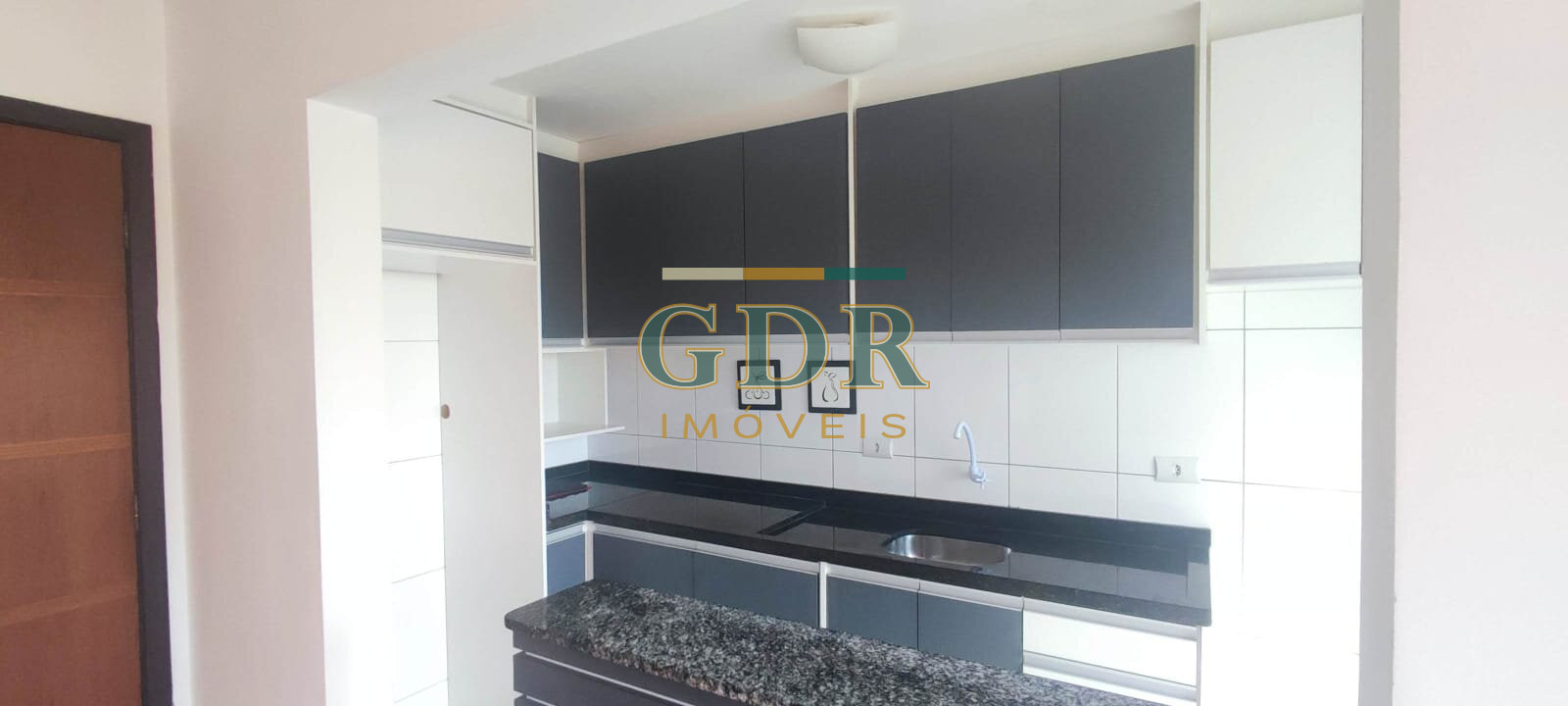 Cozinha com armários planejados seminovos e tampos em granito